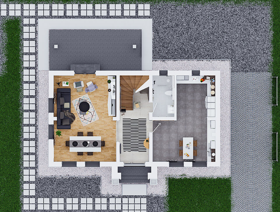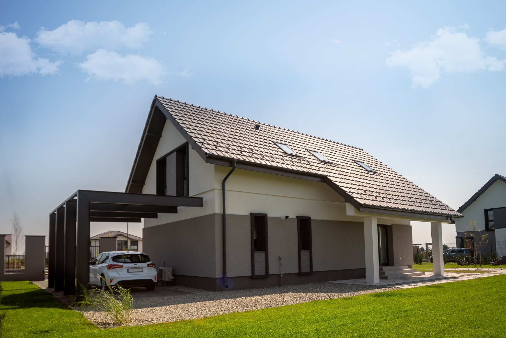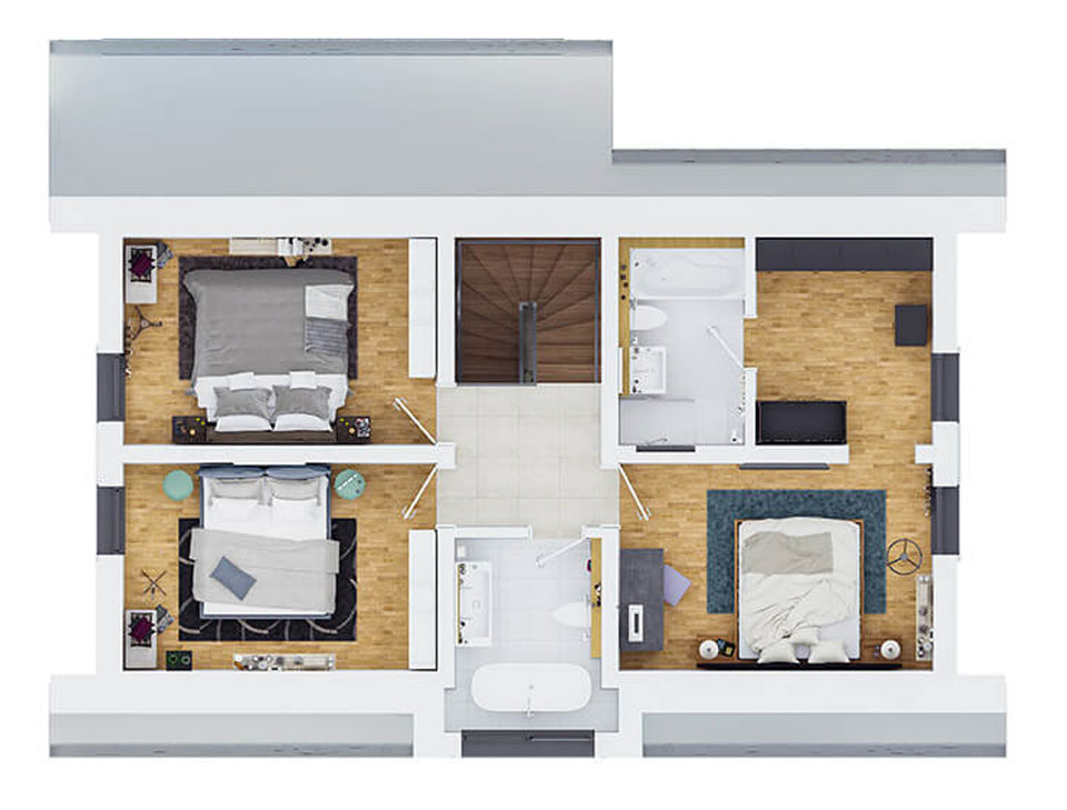 Un model de casă ideal pentru familiile active, alegerea celor care au visat întotdeauna să locuiască la curte și în același timp, să rămână conectați la rețeaua orașului. Terasa este unul dintre primele lucruri care vă vor atrage atenția și încă nu ați ajuns la mansardă! Împărțită pe 2 nivele, veți găsi 4 camere, un dressing generos și 3 băi, astfel că suntem convinși că vă veți bucura de acum din plin de spațiu.